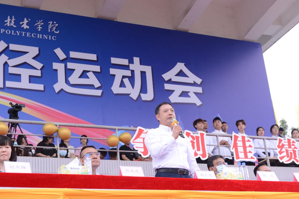 副校长刘海光在致辞中提三点希望。一是希望大家认真对待运动会的每一项赛程,展现蓬勃向上的时代风采。二是希望大家以这次运动会作为新的起点,成为健康生活方式的倡导者、传播者、示范者。全体东职人不仅要让读书成为一种生活方式,还要把运动当作一种生活习惯,去感受体育的魅力,享受运动带来的快乐。三是希望大家继续发扬体育竞技中的拼搏精神,以一往无前的奋斗姿态和永不懈怠的精神状态,勇挑重担,砥砺前行,为个人干事创业、学校发展建设注入强大动力。