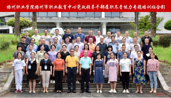 7月17日下午,2023年梧州职业学院梧州市职业教育中心党政领导干部履职尽责能力专题培训班在我校开班。学校党委副书记、校长贺定修,梧州职业学院副校长姚冰,学校继续教育学院院长苏江出席开班仪式。梧州职业学院、梧州市职业教育中心党政领导干部46人参加培训。