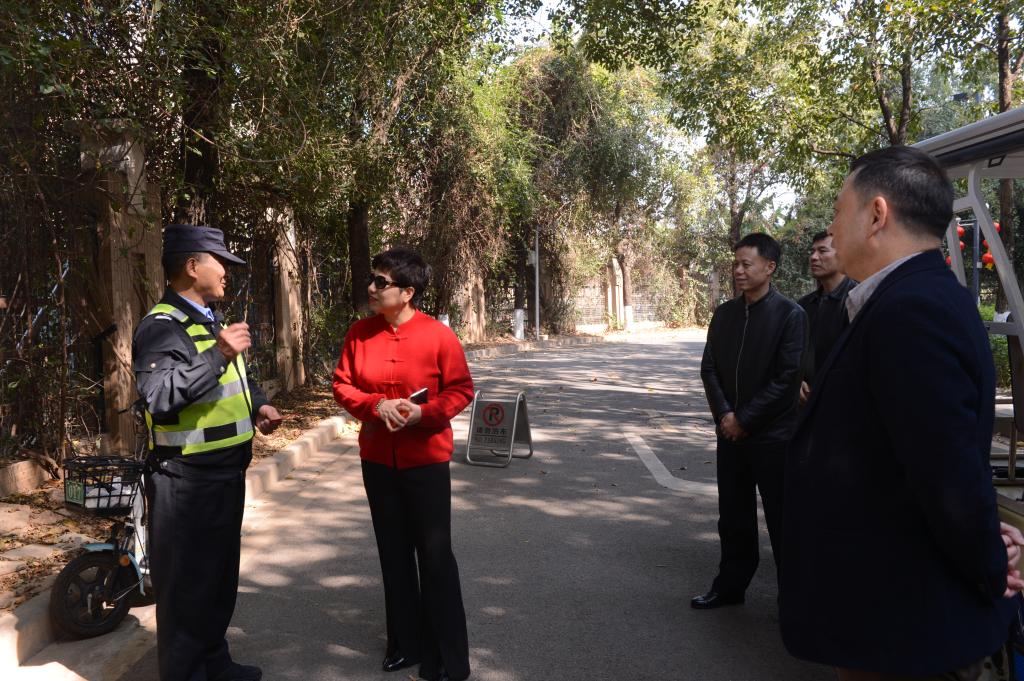 司琪书记一行先后走访了东南西北校门卫、值班室、行政楼等地。每到一处,司琪书记都与工作人员亲切交谈、互致问候,对大家寒假期间坚守工作岗位表示感谢。并详细了解寒假期间学校服务与保障工作情况,询问假期值班人员的工作和生活安排,送上了新春慰问。