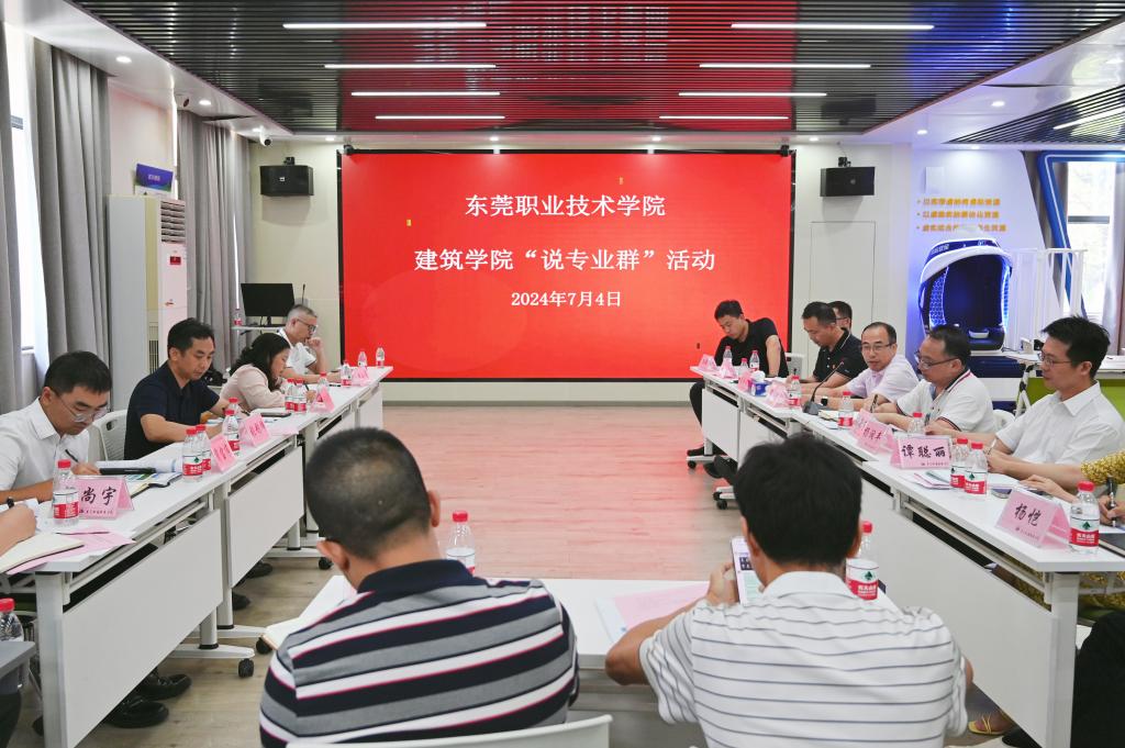 为进一步推进高水平专业群建设,7月4日上午,我校建筑学院在大岭山校区开展2024年“说专业群”活动。我校党委副书记、校长贺定修出席会议。本次活动邀请了广东科贸职业学院园林学院院长杨运英、中建三局深圳公司湾区公司嘉诚花园项目部总工程师蔺宝伟、东莞市建筑科学研究院院长张彤炜、番禺职业技术学院建筑工程学院专业带头人李小勇等专家作现场指导。活动由建筑学院党总支书记、院长颜新宁主持。