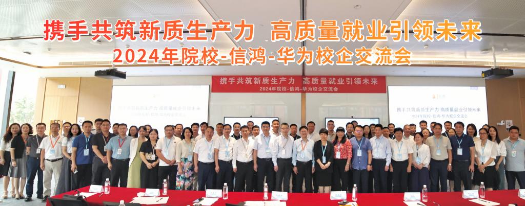 8月22日,2024年院校-信鸿-华为校企交流会在东莞松山湖华为团泊洼制造基地召开,东莞华为机器有限公司、东莞市信鸿实业发展有限公司相关负责人以及来自全国24所院校的校领导、相关代表70余人共聚一堂研讨“携手共筑新质生产力、高质量就业引领未来”。我校党委书记司琪受邀带队参加。