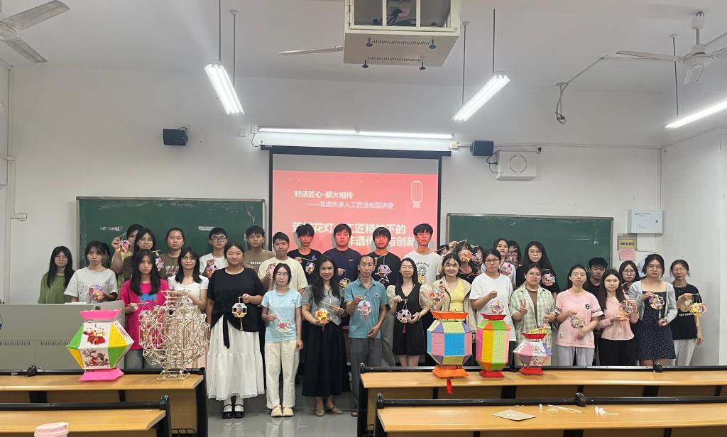 “对话匠心·薪火相传——非遗传承人工匠进校园讲座”聚焦东莞市级非遗“莞城花灯制作技艺”,邀请非遗传承人王浩均先生主讲,同学们体验非遗制作,与传承人深入互动,讲座现场气氛热烈,非遗传承中的工匠精神得以有效传播。