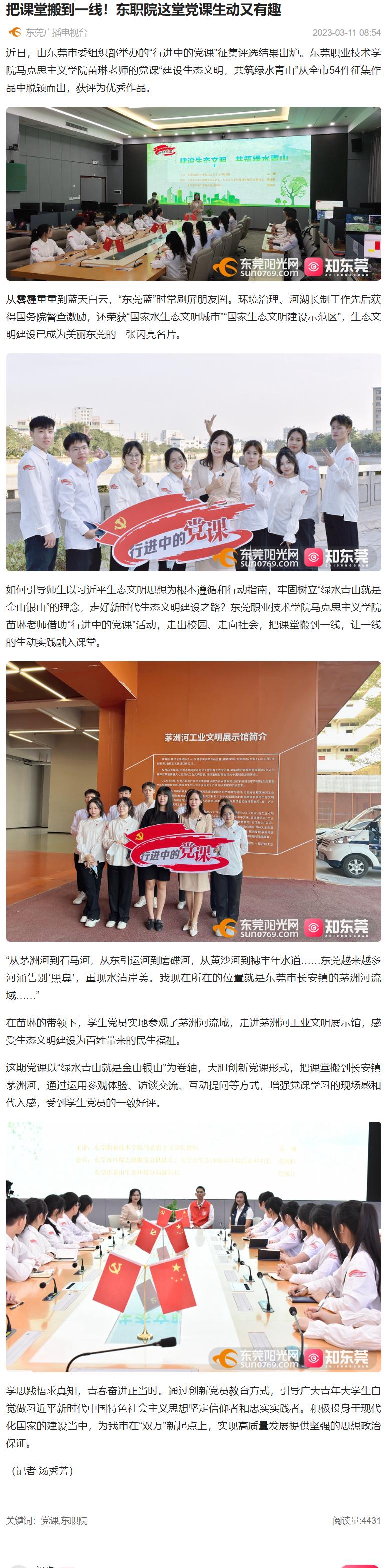 【知东莞】把课堂搬到一线!东职院这堂党课生动又有趣
