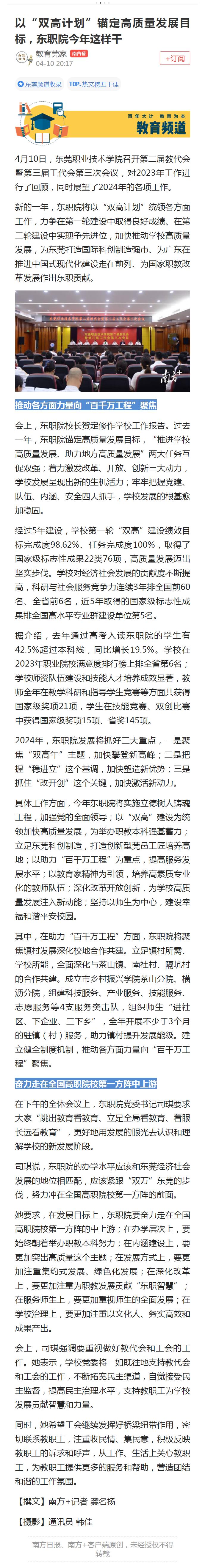 【南方+】以“双高计划”锚定高质量发展目标,东职院今年这样干