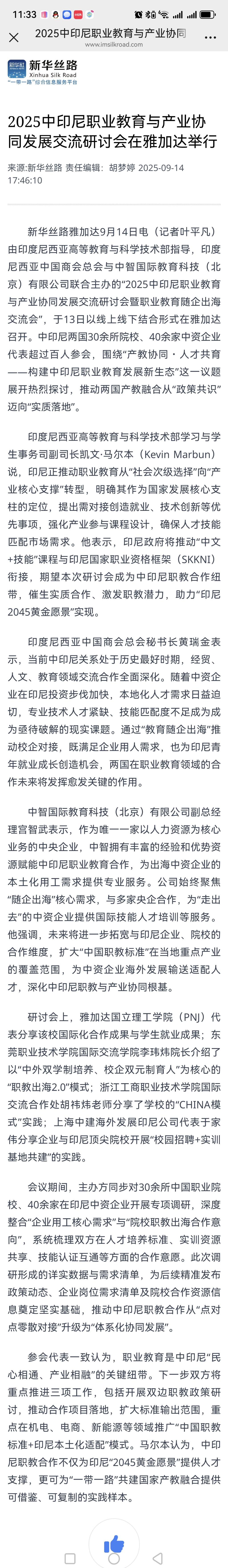 【新华社】2025中印尼职业教育与产业协同发展交流研讨会在雅加达举行